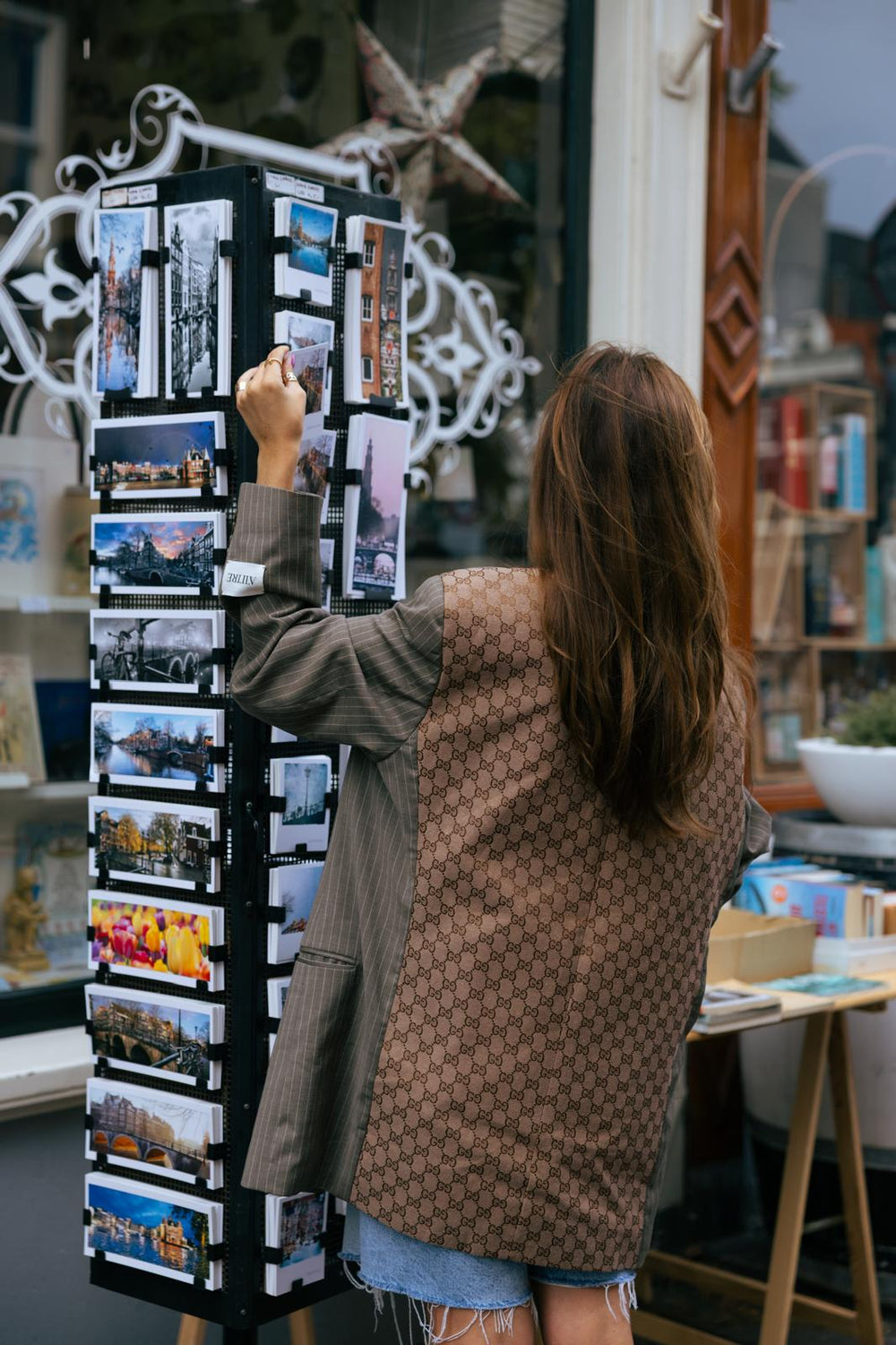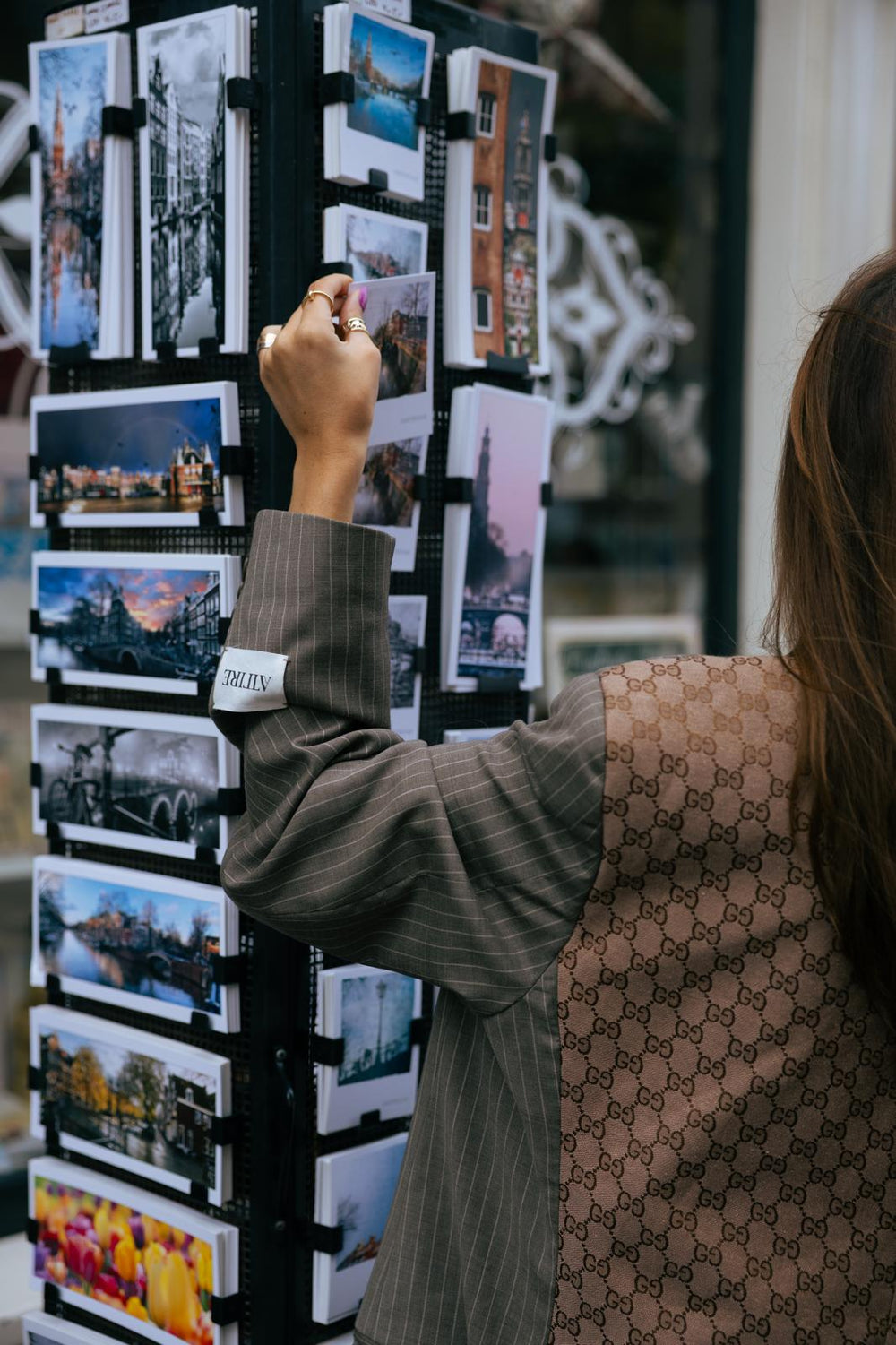 Deze blazer heeft een oversized fit en knoopsluiting aan de voorzijde. De tailored details zoals de flap zakken zorgen voor een chique look. De backprint van de blazer geeft een luxe uitstraling. Al onze blazers zijn one of a kind en kunnen dus iets wijken van de afbeelding.