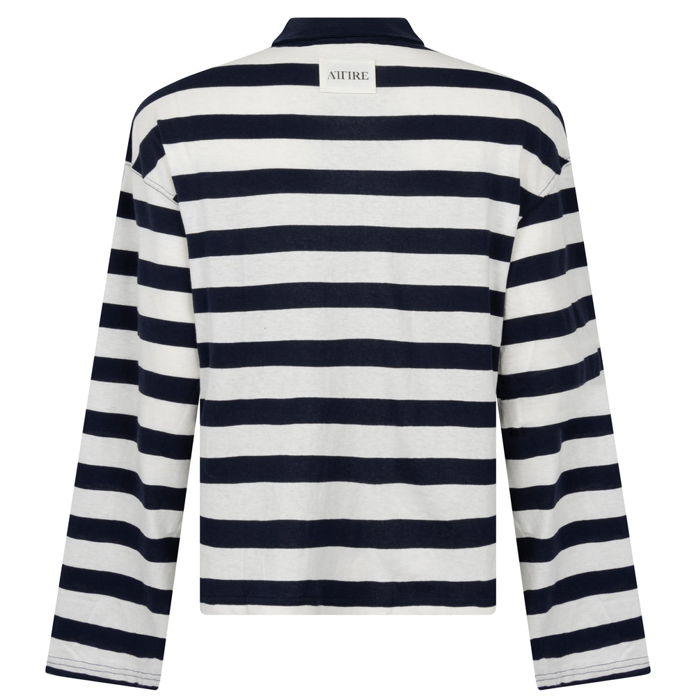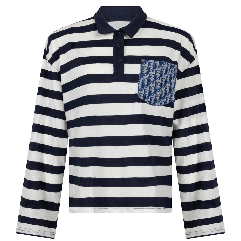 Deze gestreepte polo longsleeve heeft een klassiek rugby design met blauw en witte strepen. De witte kraag met knoopsluiting en oversized fit geven deze top een retro sporty vibe. Afgewerkt met een GG zakje.