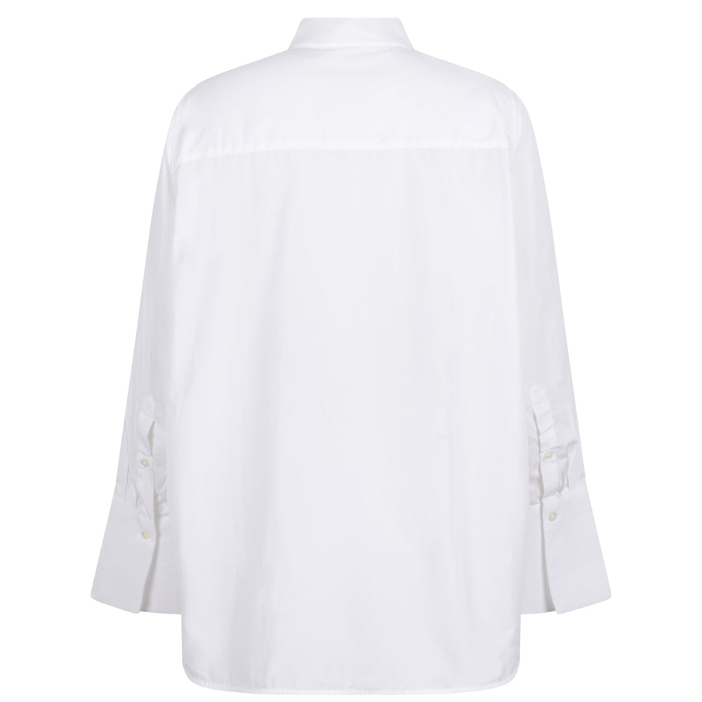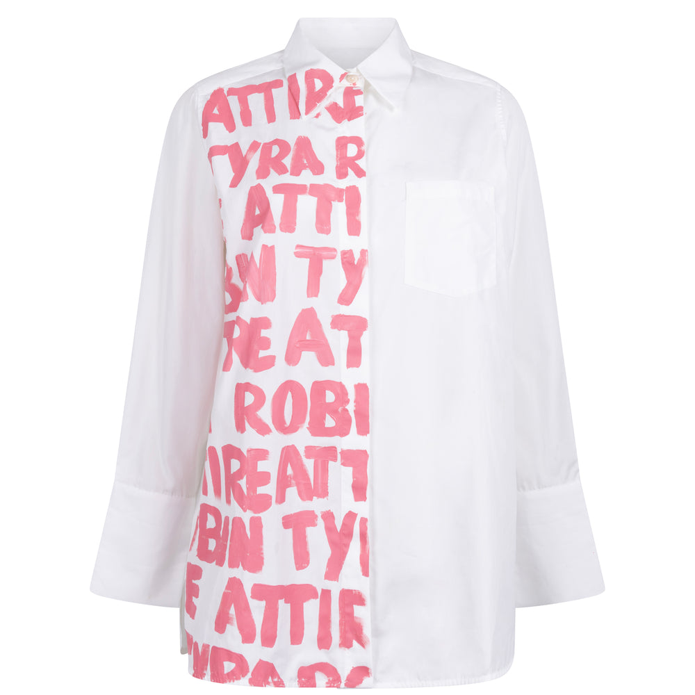 Deze witte oversized blouse heeft een klassieke button-down sluiting met een relaxed fit. De lange mouwen met manchetten en de zachte katoenen kwaliteit zorgen voor comfort en een tijdloze uitstraling. De handbeschilderde blouse is een uniek item in je kast.